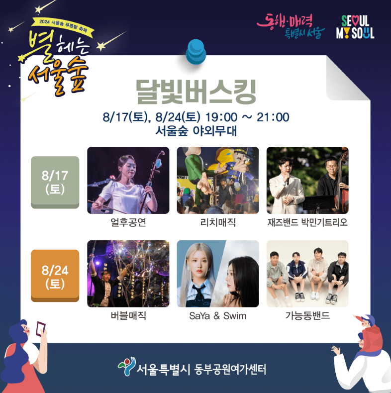 - 달빛버스킹(공연) : 마술 버블쇼, 밴드 등 다양한 공연