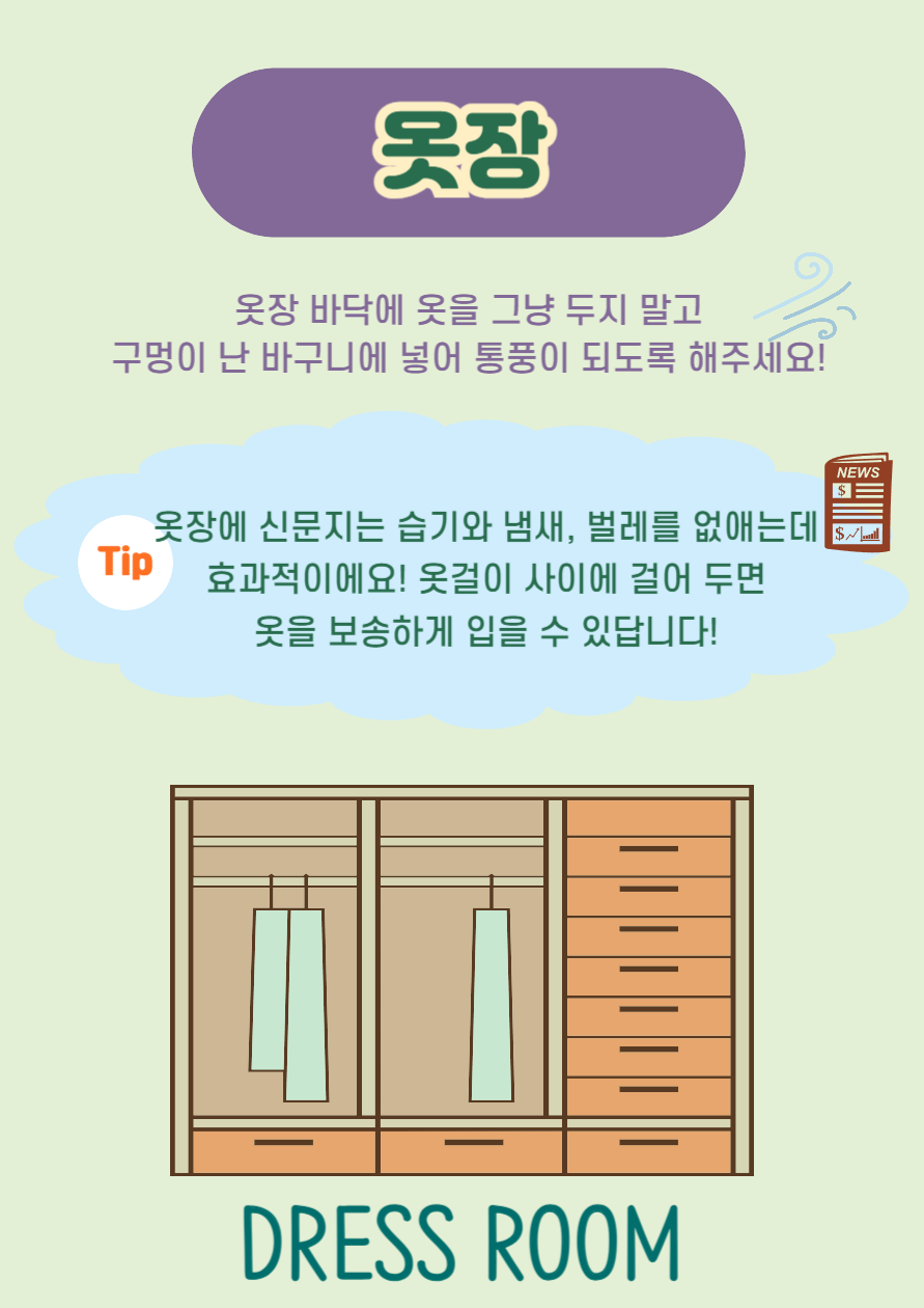 옷장에 신문지를 두게 되면 신문지가 습기와 냄새,